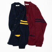 Vネック、ポケット付き。ポケットの内側は配色仕様。