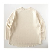 立体感のあるサーマル編み、バックはラウンドヘム、袖口はリブ仕様。