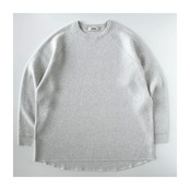 しっかりと編み目を詰めて編むことで、型崩れしにくくスウェット感覚で着られる肉感に仕上げています。