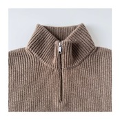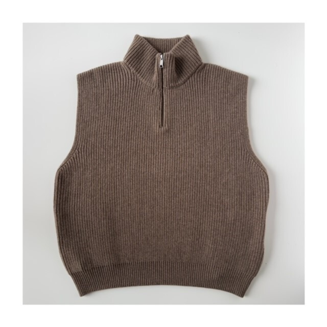 ふくらみのある太番手のウールを通常よりもきつめに編んだ、畦編みのハーフジップベスト。